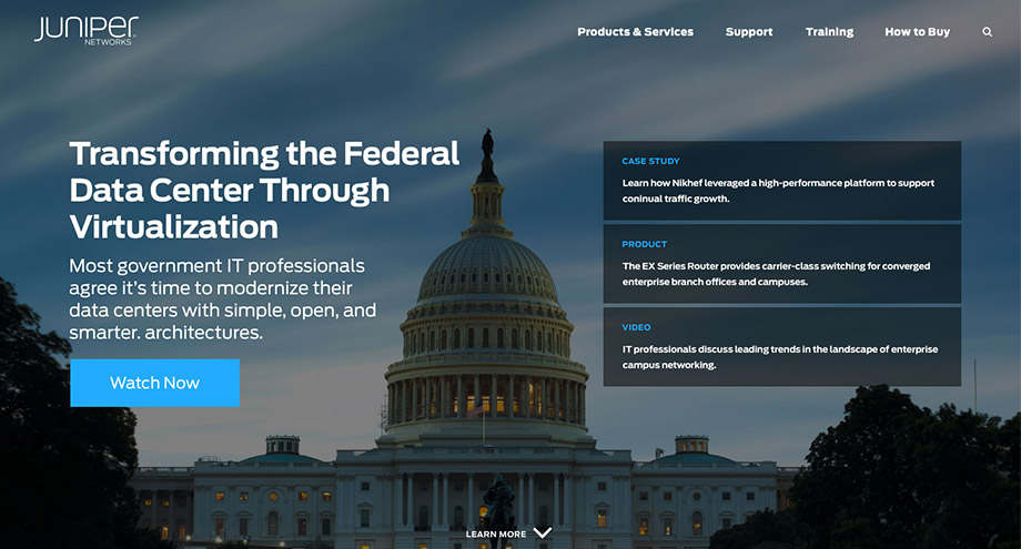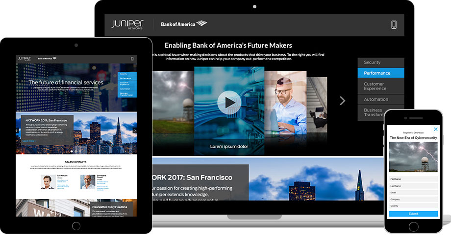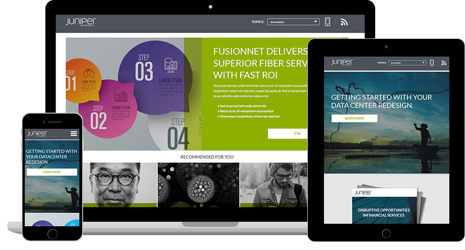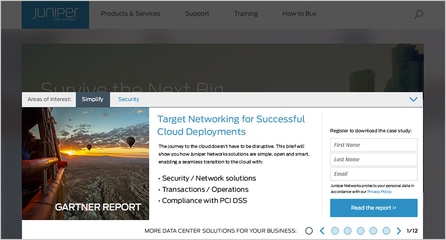 In order to support Juniper sales efforts, we designed and developed a demand generation engine that dynamically displayed customized content that shaped customer understanding and boosted interest. This program achieved unprecedented success for Juniper: