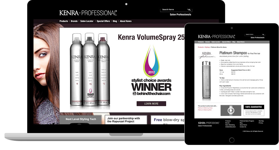 Kenra offers a complete line of award winning professional grade beauty products. To show them off, we designed a site that is bold, clean and expressive.